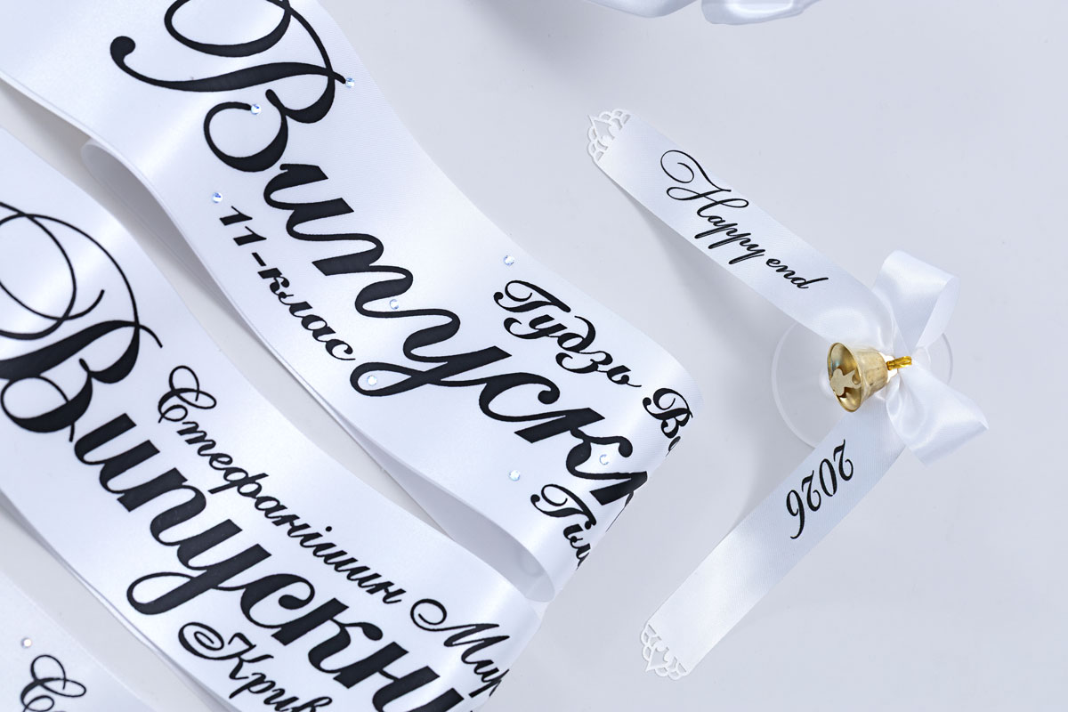 Белая Лента на выпускной черным нанесением Ленты на выпускной это яркое украшение праздника кот..