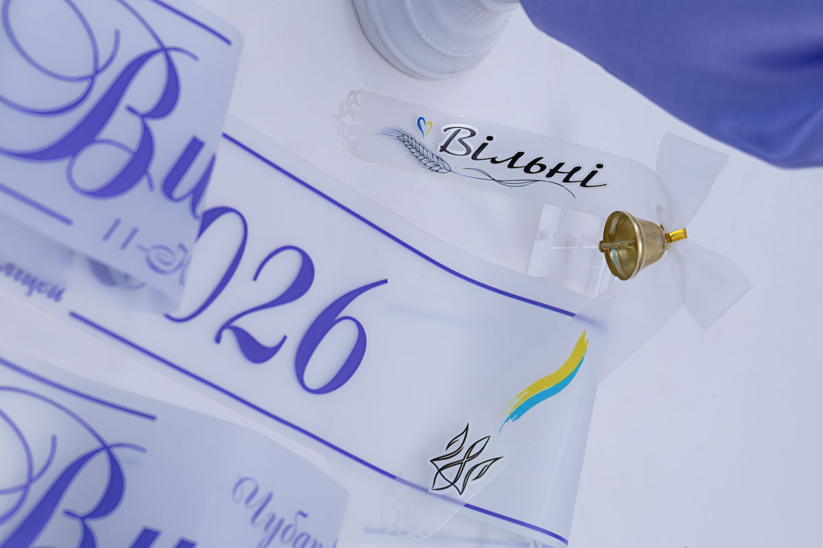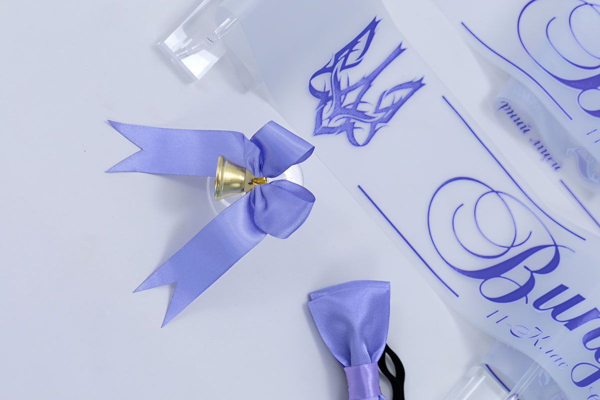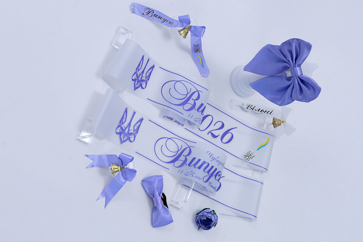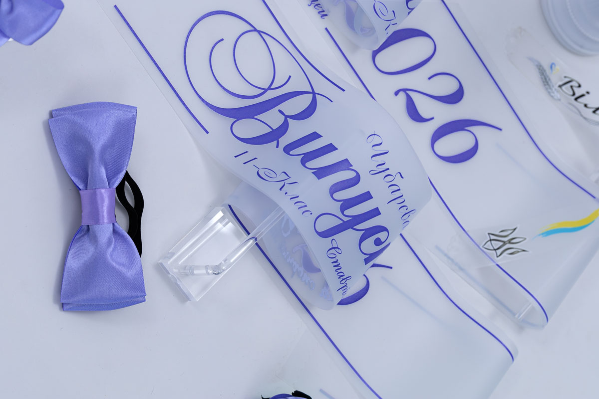 Эксклюзивная прозрачная лента на выпускной с гербом-трансформером, выполненным в глубоком сиреневом цвете. Лента имеет элегантные полоски, которые добавляют структурности. Классический герб с четкими линиями визуально подчеркивает торжественность момента. Длина — 2 метра, ширина — 10 см. Это сочетание прозрачности и силы символа.