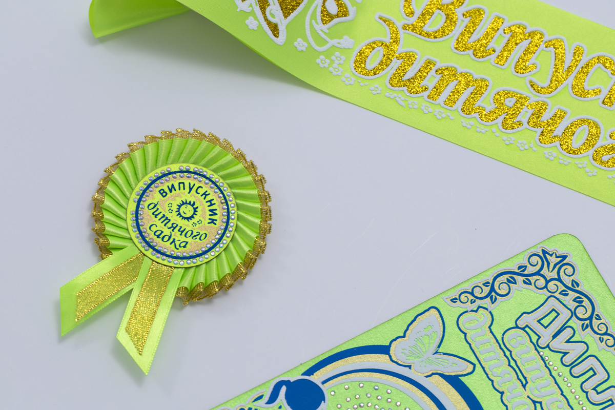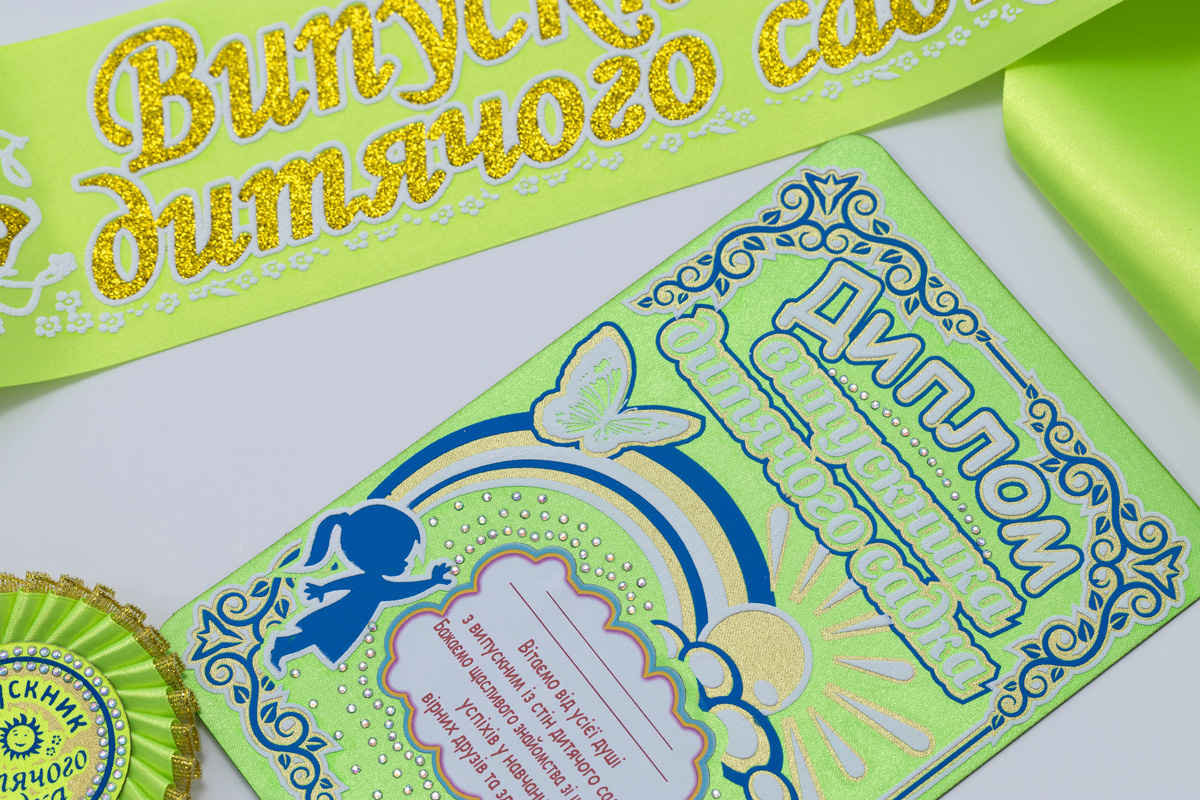 Салатные рельефные выпускные ленты для детского сада а наборе с Дипломом