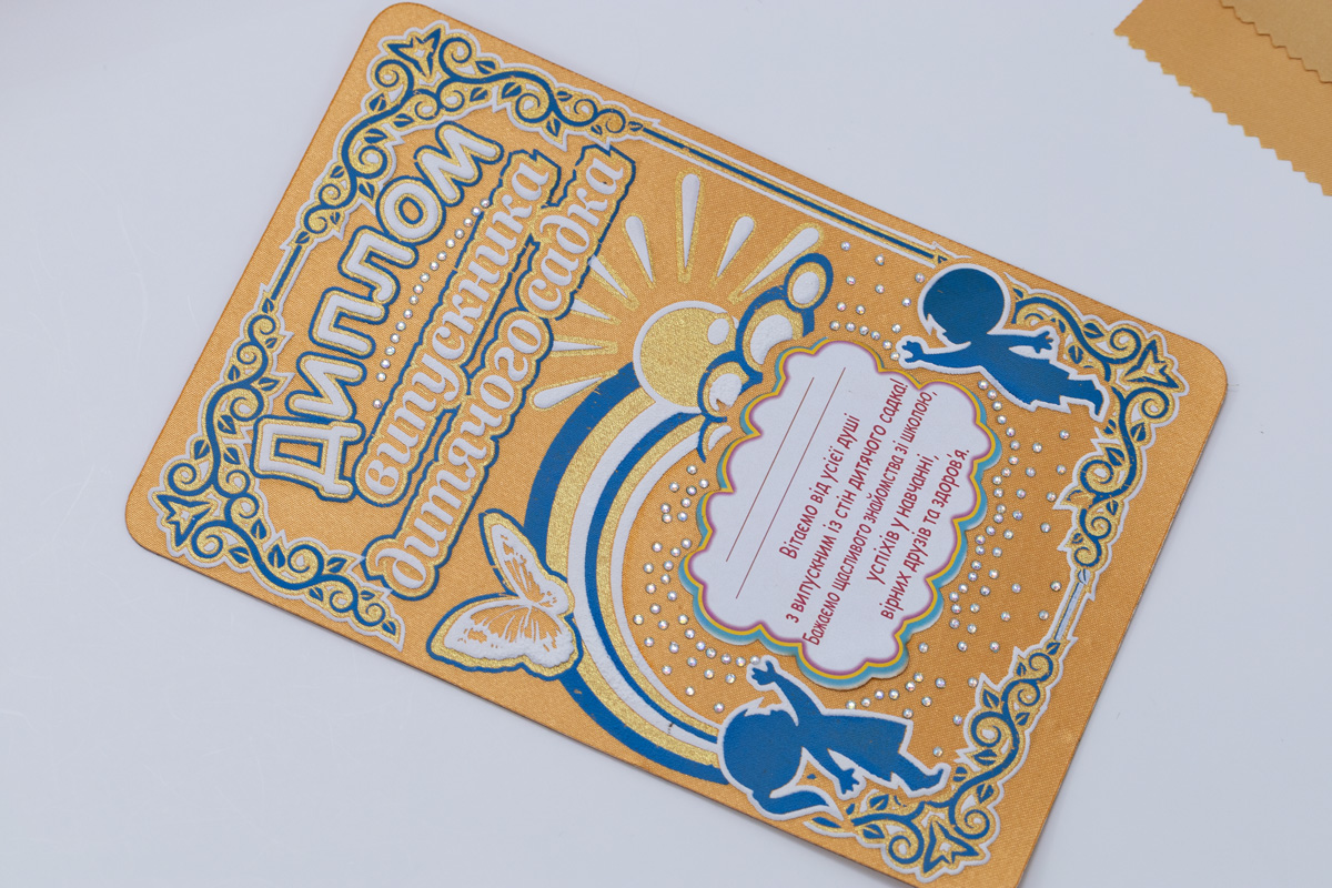 золотые рельефные Ленты с золотом - это яркий аксессуар к выпускному вашему ребенку.