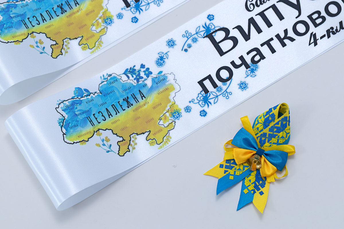 Подарите вашим выпускникам начальной школы ленту «Несокрушимые» с акцентом на патриотизм. Атлас белого цвета (1,8 м на 10 см) дополнен 3D-картой Украины. Комплект с брошками с рельефом, колокольчиком или гербом делает образ завершенным. Ваша лента — это символ гордости и несокрушимости!
